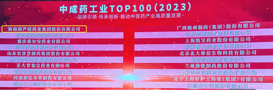 会上,还发布了“2023中成药工业TOP100”榜单,SG胜游药业集团荣耀上榜。